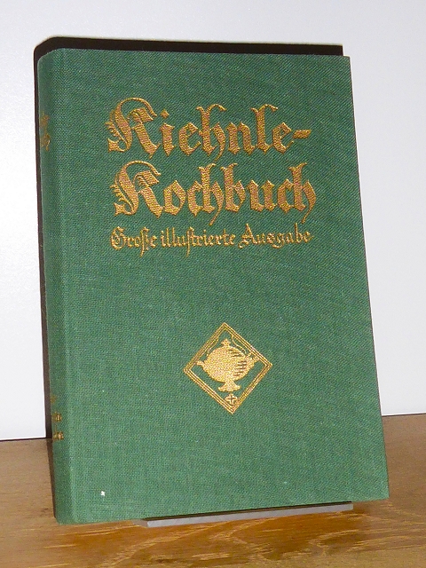 Kiehnle, Hermine: Kiehnle-Kochbuch. Große illustrierte Ausgabe für die bürgerliche und feine Küche mit Haushaltungskunde von Hermine Kiehnle, langjährige Vorsteherin der Kochschule I Stuttgart. Jubiläums-Ausgabe, 256. – 265. Tsd. Stuttgart/Weil d. Stadt, Hädecke, ca. 1955. 23 cm. 688 Seiten. 2405 erprobte u. bewährte Orig.-Rezepte … 343 Bilder, auf Tafeln u. im Text. Leinen mit Goldprägung. Ohne Schutzumschlag. Kopffarbschnitt, Lesebändchen. In Frakturschrift. Schnitt geringfügig fleckig sonst sehr gute Erhaltung.