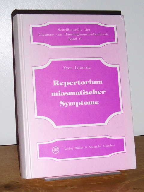Laborde, Yves: Repertorium miasmatischer Symptome. München, Müller & Steinicke, 1992. 22 cm. 332 S. fester Pappband, Einbandecken gering bestossen. Ein Blatt mit kurzer Anstreichung. Namensstempel, sonst sehr gutes Exemplar. Schriftenreihe der Clemens-von-Bönninghausen-Akademie, 6.