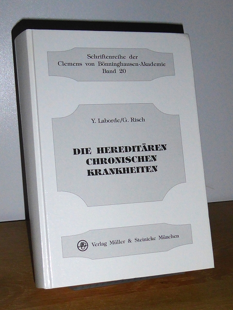Laborde, Yves: Die hereditären chronischen Krankheiten. München, Müller & Steinicke, 1998. 22 cm. 604 Seiten, 70 Abbildungen, 1 Farbtafel. fester Pappband, vereinzelte Bleistiftanstreichungen, sonst sehr gutes Exemplar. Schriftenreihe der Clemens von Bönninghausen-Akademie, 20.
