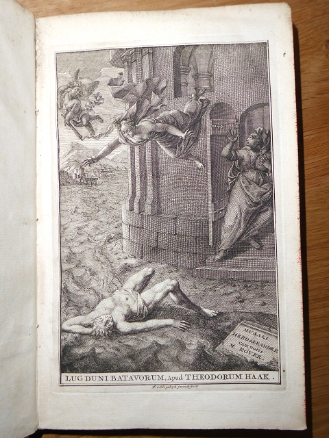 Musaeus: Musaiu Tu Grammatiku Ta Kath’Hero kai Leandron. = Musaei Grammatici de Herone Et Leandro Carmen : Cum Scholiis Graecis Nunc Primum E Codice Ms. Bibliothecae Bodlejanae Editis. Ex Recensione Matthiae Röver. Lugduni Batavorum, Haak, 1737. 20 cm. Frontisp. (Kupferst.). [23] Bl., 101 S., [13] Bl. Register. In lateinischer Sprache. Pergamenteinband, umlaufender Rotschnitt. Buchdeckel etwas gewölbt, gelenknah kleiner Wurmgang. Nur leichte Gebrauchsspuren, insgesamt schönes Exemplar.