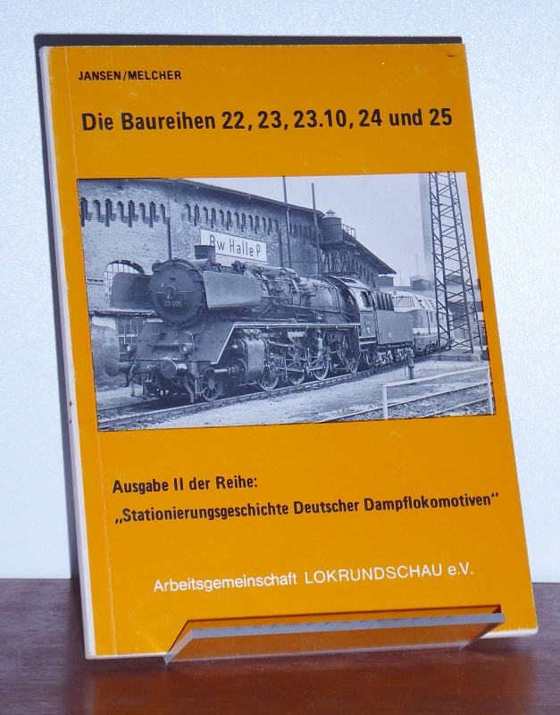 Jansen, Karl Heinz / Melcher: Die Baureihen 22, 23, 23.10, 24 und 25. Ausgabe II der Reihe: Stationierungsgeschichte deutscher Dampflokomotiven. Hamburg, Arbeitsgemeinschaft Lokrundschau, 1976. 21 cm. 86 Seiten, illustriert. Broschur. Gutes Exemplar.