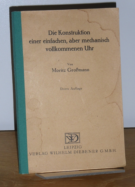 Grossmann, Moritz: Die Konstruktion einer einfachen, aber mechanisch vollkommenen Uhr. 3. Auflage. Bautzen, Hübner, ohne Jahresangabe. 20x13 cm. 128 Seiten, 44 graph. Darstellungen. Broschur, Einband fleckig. Buchrücken u. vorderes Innengelenk verstärkt. Seiten in guter Erhaltung.