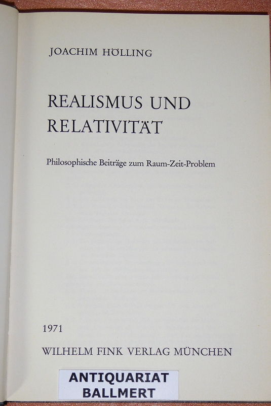 Hölling, Joachim: Realismus und Relativität. Philosophische Beiträge zum Raum-Zeit-Problem. München, Fink, 1971. 24 cm. 262 S., ohne Porträt des Autors, Leinen, das sonst bei diesem Buch eingeklebte Porträt des Autors fehlt, sonst gutes Exemplar.