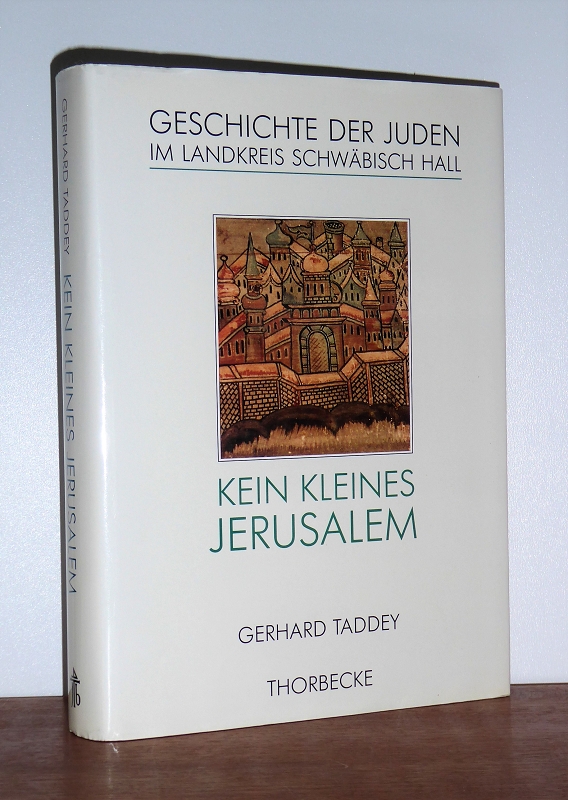 Schwäbisch Hall – Taddey, Gerhard: Kein kleines Jerusalem. Geschichte der Juden im Landkreis Schwäbisch Hall. Sigmaringen, Thorbecke, 1992. 24 cm. 376 S., [24] Bl. Ill., graph. Darst., Kt., 2 Stammtaf., Leinen mit Schutzumschlag, kleiner Namensvermerk, sehr gutes Exemplar. Forschungen aus Württembergisch-Franken, 36.