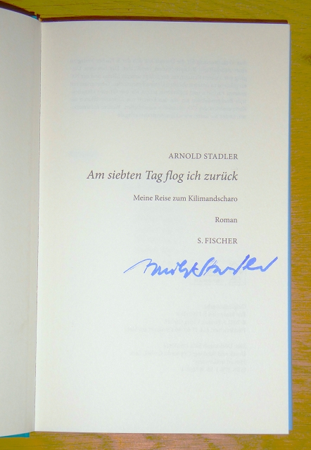 Stadler, Arnold: Am siebten Tag flog ich zurück. Vom Autor SIGNIERT! Meine Reise zum Kilimandscharo : Roman. Originalausgabe. Frankfurt am Main, S. Fischer, 2021. 21 cm, 239 Seiten. fester Pappband mit Schutzumschlag, sehr gutes Exemplar in neuwertiger Erhaltung.