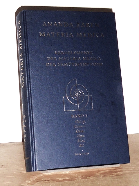 Zaren, Ananda: Materia medica. Kernelemente der Materia medica der Gemütssymptome. Band 1: Calcarea phosphorica, Cannabis indica, Causticum, Hyoscyamus, Medorrhinum, Silicea. Göttingen, Burgdorf, 1994. 23 cm. 292 Seiten. Leinen, Einband leicht fleckig. Zwei Adressstempel, sonst sehr gutes Exemplar.