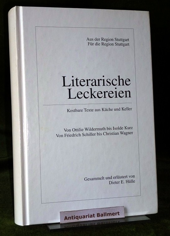 Stuttgart – Hülle, Dieter E./ Schmid Ralf Jochen / Fahrion Gunter (Hrsg.): Literarische Leckereien. Kostbare Texte aus Küche und Keller. Aus der Region Stuttgart – Für die Region Stuttgart. Von Ottilie Wildermuth bis Isolde Kurz. Von Friedrich Schiller bis Christian Wagner Sindelfingen. Edition Sutter, 2000, 21 cm., 286 Seiten, Hardcover, orig. Pp., gute Erhaltung,