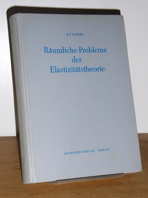 Lurje, A. I.: Räumliche Probleme der Elastizitätstheorie. Autorisierte ergänzte Ausgabe. In deutscher Sprache herausgegeben von Dr. Günter Landgraf. Berlin, Akademie-Verlag, 1963. 24 cm. XI , 504 Seiten mit 35 Abbildungen und 17 Tabellen. Leinen, Papierbedingt etwas gebräunt, leichte Gebrauchsspuren, insgesamt gute Erhaltung.